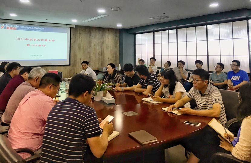 為更好地發(fā)揮工會組織在“促進企業(yè)發(fā)展,保障職工權(quán)益”中的積極作用,根據(jù)《工會法》和《中國工會章程》的相關(guān)規(guī)定,華新機電于5月24日召開了2019年度職工代表大會第一次會議進行工會委員會的換屆選舉,會議由公司紀(jì)委書記、黨群工作部部長胡萍主持,公司黨委書記、董事長譚竹青參加了會議。
